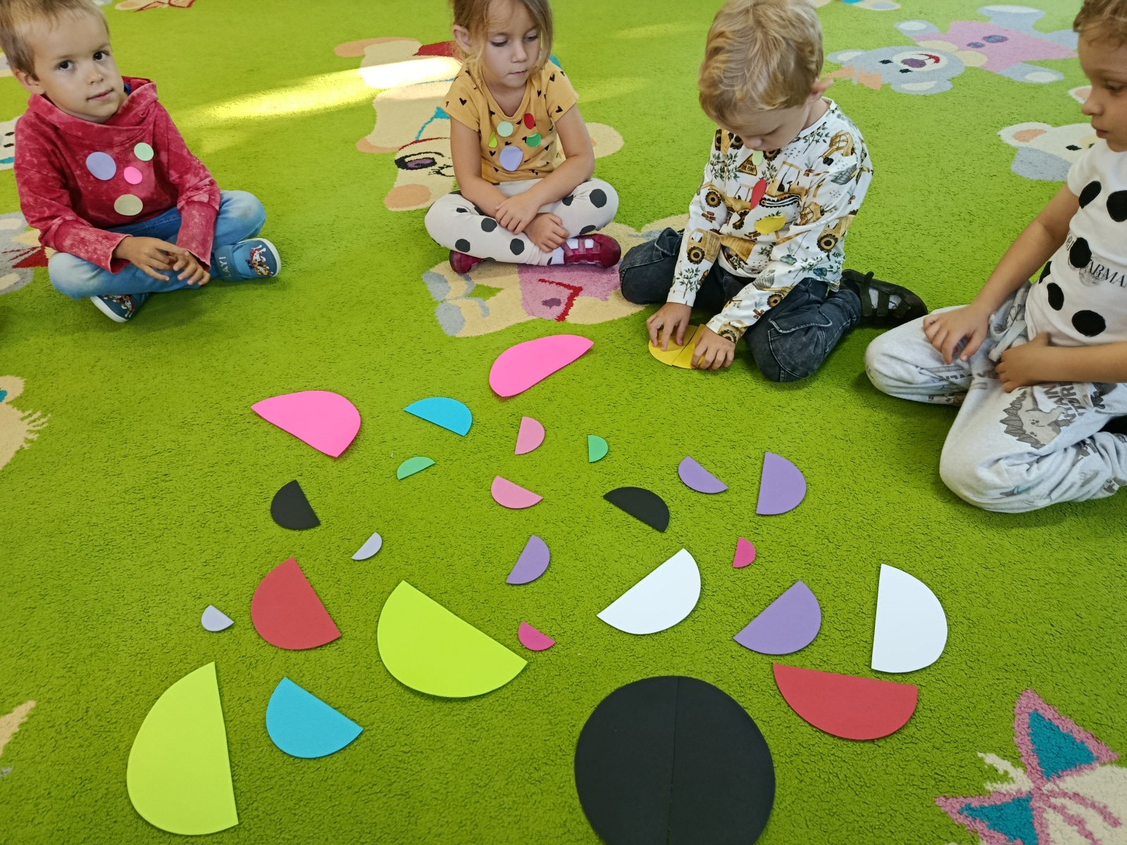 15.09.2025 r. wszystkie dzieci z przedszkola obchodziły Międzynarodowy Dzień Kropki. Jest to święto odkrywania talentów, kreatywności, odwagi a przede wszystkim dobrej zabawy. Tego dnia kropki pojawiły się na ubraniach wszystkich przedszkolaków. Poza liczeniem kropek, przenoszeniem pomponów za pomocą klamerek, gimnastyką na wesoło, przedszkolaki śpiewały piosenki, utrwaliły nazwy kolorów łącząc przecięte kropki w pary oraz wykonały prace plastyczne – oczywiście z kropką w roli głównej. Jak przystało na Dzień Kropki, atmosfera była pełna radości, energii i zaangażowania. Na pamiątkę tego kreatywnego dnia każda grupa otrzymała dyplom.