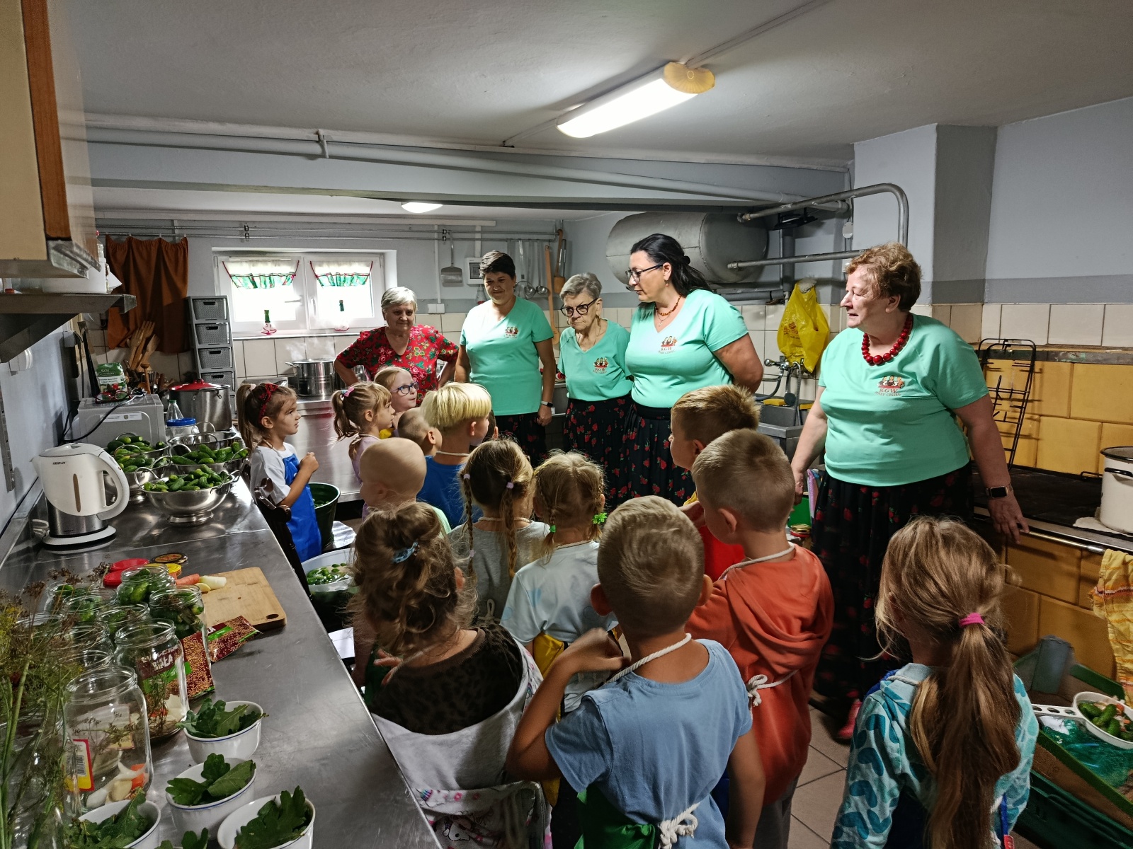 9 września w ramach projektu „Wspólne chwile z tradycją – KGW Cisiec Mały dla mieszkańców” braliśmy udział w wyjątkowych warsztatach kulinarnych: przedszkolaki pod fachowym okiem Pań z KGW Cisiec Mały samodzielnie kisiły ogórki. Dzieci dowiedziały się skąd wzięła się tradycja kiszenia, jakie składniki są potrzebne oraz dlaczego ogórki kiszone są takie zdrowe, następnie każdy przedszkolak mógł własnoręcznie przygotować swój słoik ogórków. Przedszkolaki nie tylko świetnie się bawiły, ale również zdobyły nowe umiejętności oraz poznały kolejną odsłonę lokalnej tradycji kulinarnej. Dziękujemy bardzo gospodyniom z KGW Cisiec Mały za przygotowanie tego wyjątkowego spotkania.