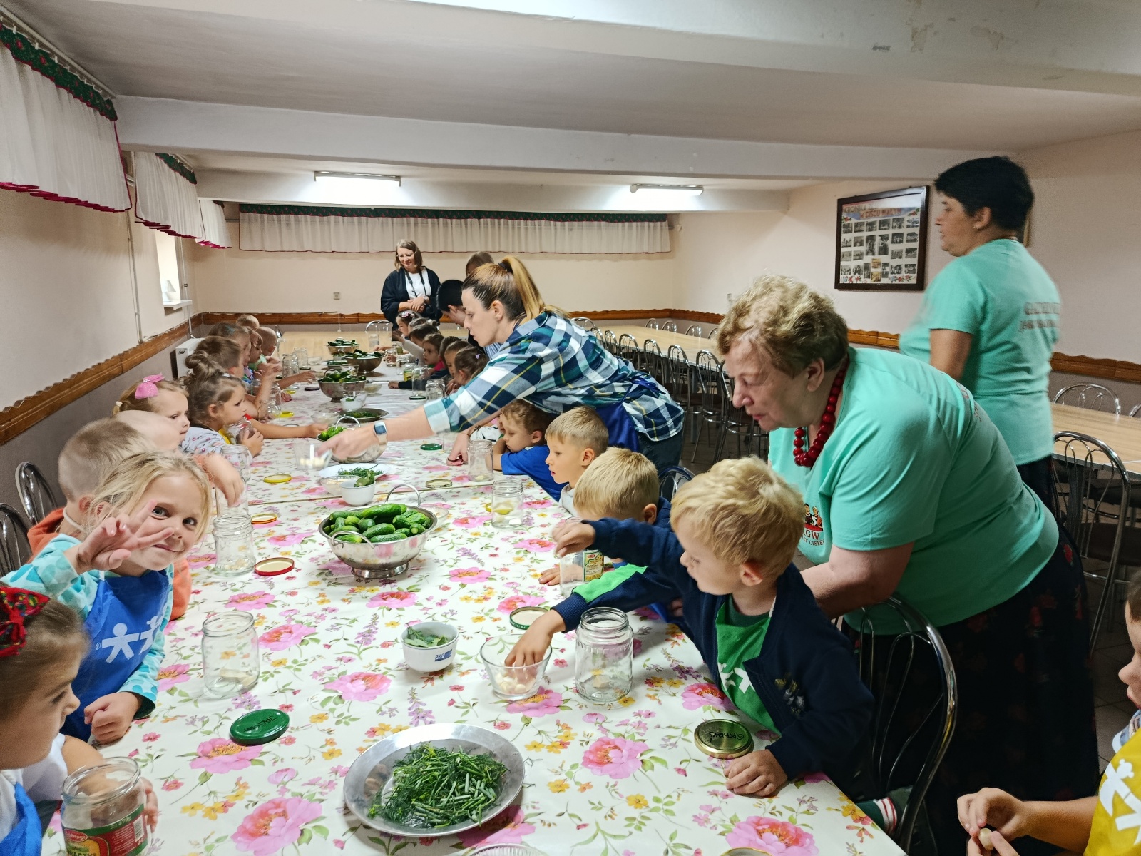 9 września w ramach projektu „Wspólne chwile z tradycją – KGW Cisiec Mały dla mieszkańców” braliśmy udział w wyjątkowych warsztatach kulinarnych: przedszkolaki pod fachowym okiem Pań z KGW Cisiec Mały samodzielnie kisiły ogórki. Dzieci dowiedziały się skąd wzięła się tradycja kiszenia, jakie składniki są potrzebne oraz dlaczego ogórki kiszone są takie zdrowe, następnie każdy przedszkolak mógł własnoręcznie przygotować swój słoik ogórków. Przedszkolaki nie tylko świetnie się bawiły, ale również zdobyły nowe umiejętności oraz poznały kolejną odsłonę lokalnej tradycji kulinarnej. Dziękujemy bardzo gospodyniom z KGW Cisiec Mały za przygotowanie tego wyjątkowego spotkania.