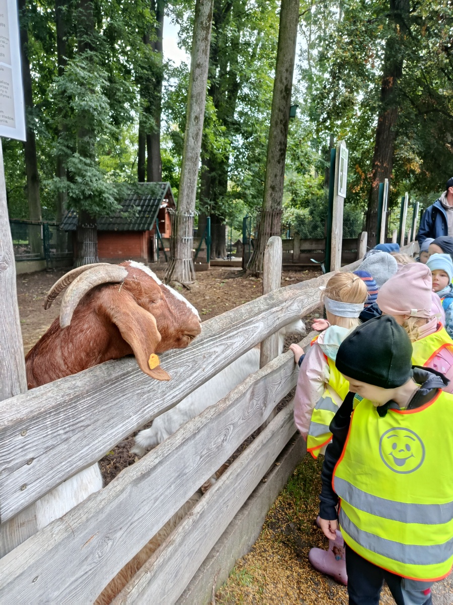 29 września wybraliśmy się na wycieczkę do Parku Habsburgów w Żywcu i Mini Zoo. Największą frajdą dla przedszkolaków było bliskie spotkanie ze zwierzętami zamieszkującymi Mini Zoo. Następnie zrobiliśmy krótki jesienny spacer przez park podziwiając piękno przyrody: dzieci rozpoznawały i utrwalały nazwy rożnych gatunków drzew, ich liście i owoce. Udało nam się nawet wypatrzeć kilka wiewiórek skaczących po gałęziach! Na koniec przedszkolaki miały okazje poznać tradycje zabawkarstwa ludowego na Żywiecczyźnie: obejrzały wystawę tematyczną, a następnie uczestniczyły w warsztatach malując drewniane ptaszki. Wycieczka, mimo jesiennego chłodu, była bardzo udana i dostarczyła przedszkolakom wiele frajdy i uśmiechu na twarzy.