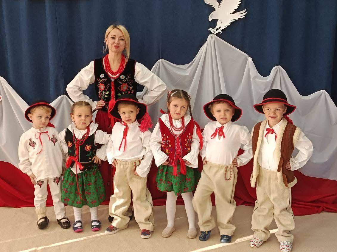 11 listopada br. to wielki i szczęśliwy dzień dla wszystkich Polaków. Właśnie tego dnia po 123 latach niewoli, Polska odzyskała niepodległość. Dlatego co roku 11 listopada obchodzimy nasze Święto Narodowe – Święto Niepodległości. W dniu 12 listopada Nauczyciele oraz dzieci w naszym przedszkolu w regionalnych strojach ludowych tańcem, słowem i piosenką oddały szacunek symbolom narodowym, symbolom walki o wolność i zwycięstwo oraz okazały miłość do Ojczyzny.  Na zakończenie całej uroczystości po słowach: „Baczność, do Hymnu” wszyscy odśpiewaliśmy Nasz Hymn Narodowy,  uwieczniając to wydarzenie pamiątkowym zdjęciem.