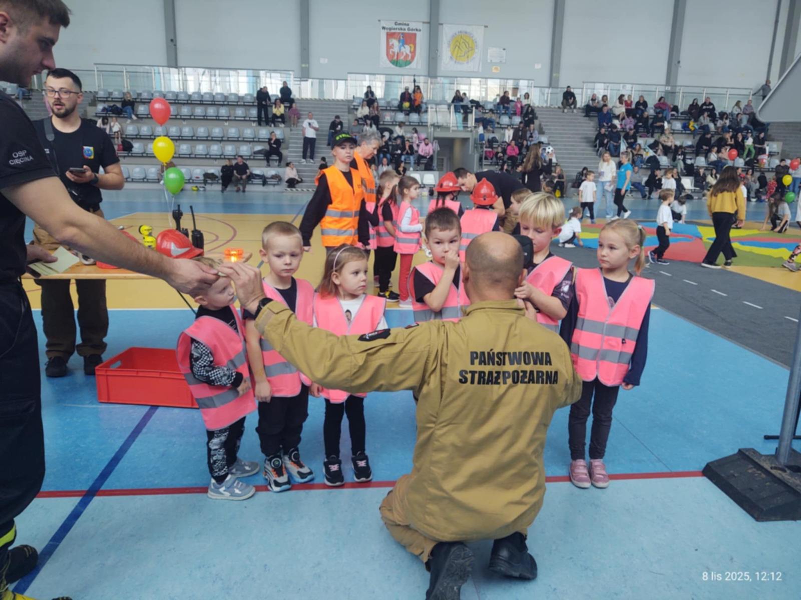 Za nami kolejna Olimpiada Przedszkolaka. 8 listopada dzieci wzięły udział w konkurencjach związanych z bezpieczeństwem i ruchem drogowym pod hasłem „Bezpieczni na drodze”. W profesjonalnych tematycznych strojach pięknie zaliczały kolejne zadania wykazując się zręcznością i szybkością. A co najważniejsze, świetnie przy tym się bawiły. Po emocjonującej części sportowej przedszkolaki mogły skorzystać z przygotowanych dla nich w tym dniu atrakcji: dmuchańca, brokatowych tatuaży czy zabaw chustą animacyjną. Dodatkowo, na tematycznych stanowiskach mogły poznać pracę policjantów, strażaków, ratowników GOPR, poznać sprzęt ratowniczy i wziąć udział w krótkich pokazach. Każdy z naszych przedszkolaków spisał się na medal i taką właśnie odznakę otrzymał na uroczystej dekoracji uczestników. Dziękujemy Rodzicom i Opiekunom za zaangażowanie i obecność w tym dniu na hali.