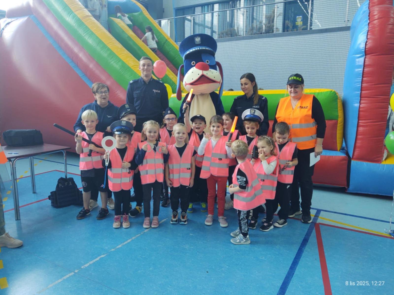Za nami kolejna Olimpiada Przedszkolaka. 8 listopada dzieci wzięły udział w konkurencjach związanych z bezpieczeństwem i ruchem drogowym pod hasłem „Bezpieczni na drodze”. W profesjonalnych tematycznych strojach pięknie zaliczały kolejne zadania wykazując się zręcznością i szybkością.  A co najważniejsze, świetnie przy tym się bawiły. Po emocjonującej części sportowej przedszkolaki mogły skorzystać z przygotowanych dla nich w tym dniu atrakcji: dmuchańca, brokatowych tatuaży czy zabaw chustą animacyjną. Dodatkowo, na tematycznych stanowiskach mogły poznać pracę policjantów, strażaków, ratowników GOPR, poznać sprzęt ratowniczy i wziąć udział w krótkich pokazach. Każdy z naszych przedszkolaków spisał się na medal i taką właśnie odznakę otrzymał na uroczystej dekoracji uczestników. Dziękujemy Rodzicom i Opiekunom za zaangażowanie i obecność w tym dniu na hali.