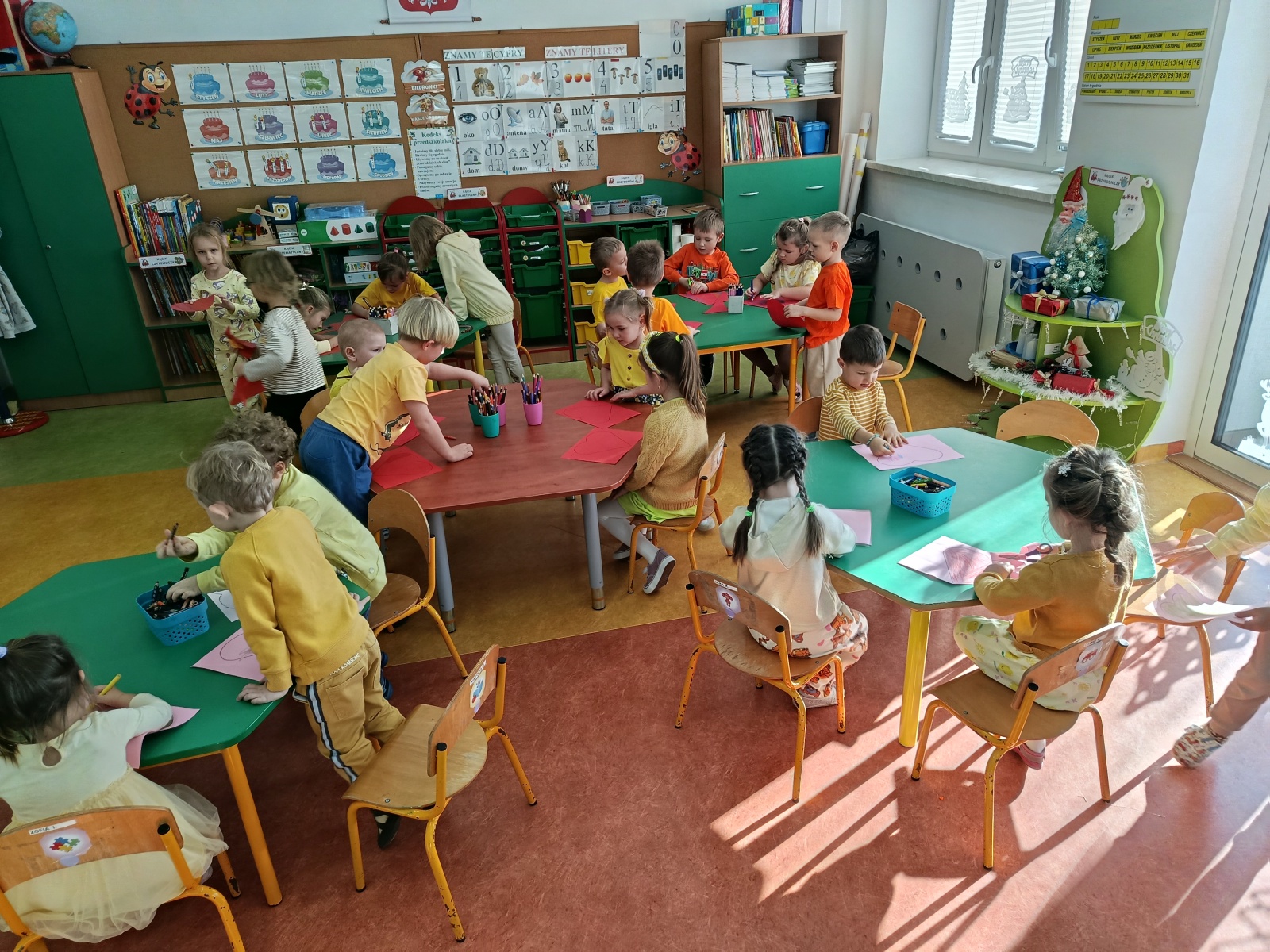 W dniu 28 listopada 2025 r. obchodziliśmy „Dzień Życzliwości”. Był to dzień pełen uśmiechów, dobrych uczynków, miłych słów oraz pozytywnych emocji. Dla podkreślenia wyjątkowości tego dnia, wszyscy byli ubrani na żółto – kolor żółty kolor to radość. Zajęcia zaczęły się od „iskierki życzliwości”, następnie dzieci musiały odszukać list od wróżki życzliwości. Kolejny punktem zajęć była rozmowa na temat życzliwości i co zrobić, aby sprawić komuś radość i spowodować uśmiech na twarzy, przypinając żółte uśmiechnięte buźki na drzewku życzliwości. Przedszkolaki tego dnia pokonywały tor zaufania z kolegą. Przy stolikach wykonaliśmy serduszka dla swojego najlepszego przyjaciela. Uwieńczeniem tak pięknego i radosnego dnia wszystkie przedszkolaki składały przysięgę: „Dekalogu Życzliwości”, gdzie pieczętowały odbicie swojego paluszka na dekalogu. Zdjęcia które znajdują się poniżej, najlepiej odzwierciedlaj ten wspaniały dzień.