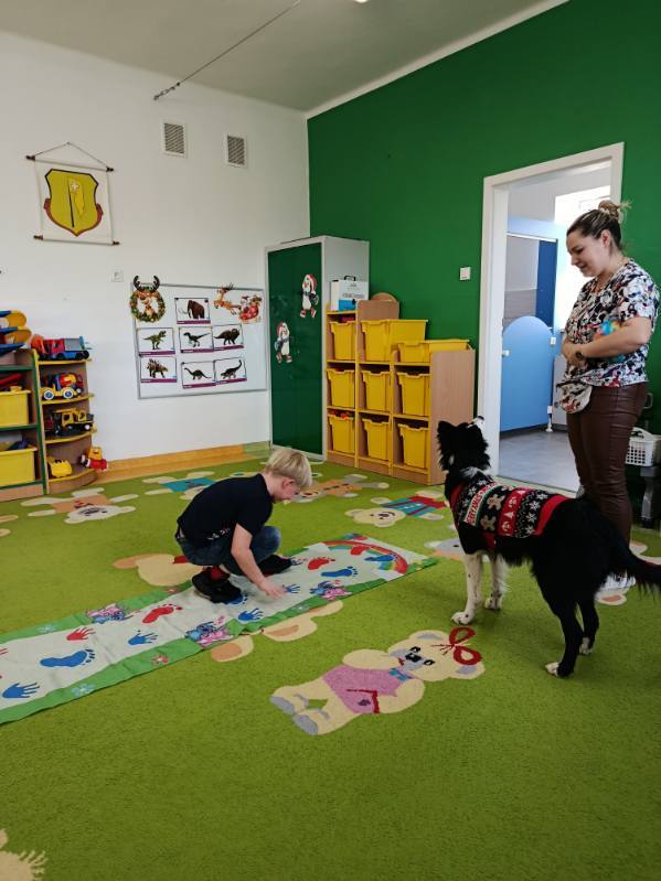 Dzisiaj nasze przedszkole po raz kolejny odwiedziła sympatyczna suczka Kira wraz ze swoją opiekunką-panią Karoliną. Nie od dziś wiadomo, że kontakt z psem ma na nas pozytywny wpływ-tak było i dzisiaj. Dzieci podczas prostych zajęć ruchowych z udziałem Kiry uczyły się poprawnego kontaktu z psem, empatii, wrażliwości, a także przełamywały swoje lęki. Zajęcia były pełne pozytywnej energii i roześmianych dziecięcych buziek.