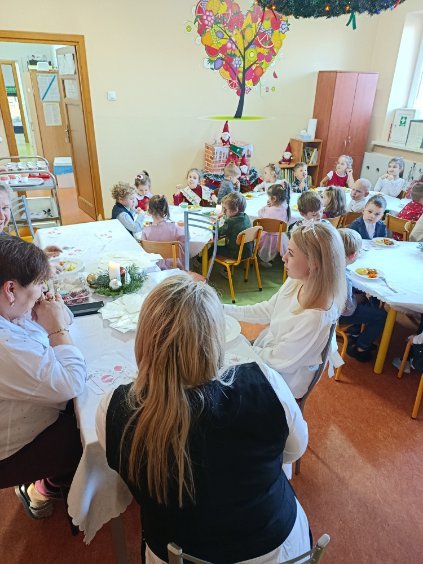 19 grudnia w naszej grupie zapanowała wyjątkowa, świąteczna atmosfera. Dzieci odświętnie ubrane z radością uczestniczyły w przedszkolnej Wigilii. Były wspólne życzenia, dzielenie się opłatkiem, smakołyki, śpiewanie kolęd i pastorałek. Wigilia w przedszkolu to piękna tradycja, która uczy dzieci wrażliwości, życzliwości i świątecznych wartości. Czas upłynął w bardzo miłej, serdecznej atmosferze. Wszystkie dzieci czuły zbliżające się wielkimi krokami Święta Bożego.