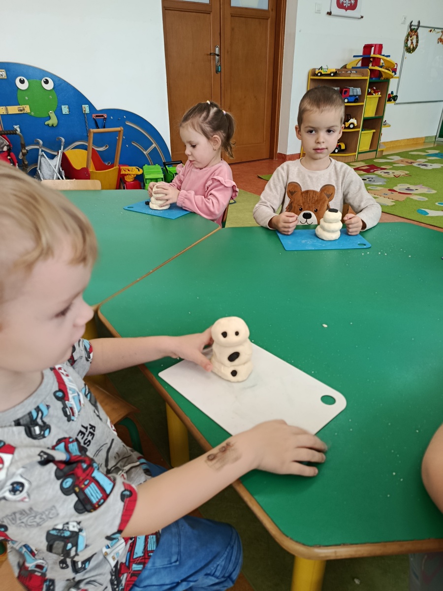 W styczniu maluszki z grupy „Motylki” uczestniczyły w szeregu zajęć interdyscyplinarnych – łączących zadania przyrodnicze, matematyczne, plastyczno – sensoryczne, o tematyce zimowej. Motywem przewodnim zajęć był bałwanek. Dzieci między innymi wzięły udział w zajęciach sensoplastycznych „Fabryka bałwanków”, na których przygotowały, ugniatały i formowały kulki z masy solnej samodzielnie lepiąc i ozdabiając bałwanka. Bawiliśmy się również na świeżym powietrzu, a jak wiadomo nie ma lepszej zabawy niż zabawa na śniegu! Nie mogło zabraknąć lepienia bałwanka, bitwy na śnieżki oraz kąpieli w śniegu. Mamy nadzieję że zima dostarczy nam jeszcze śnieżnych przygód.