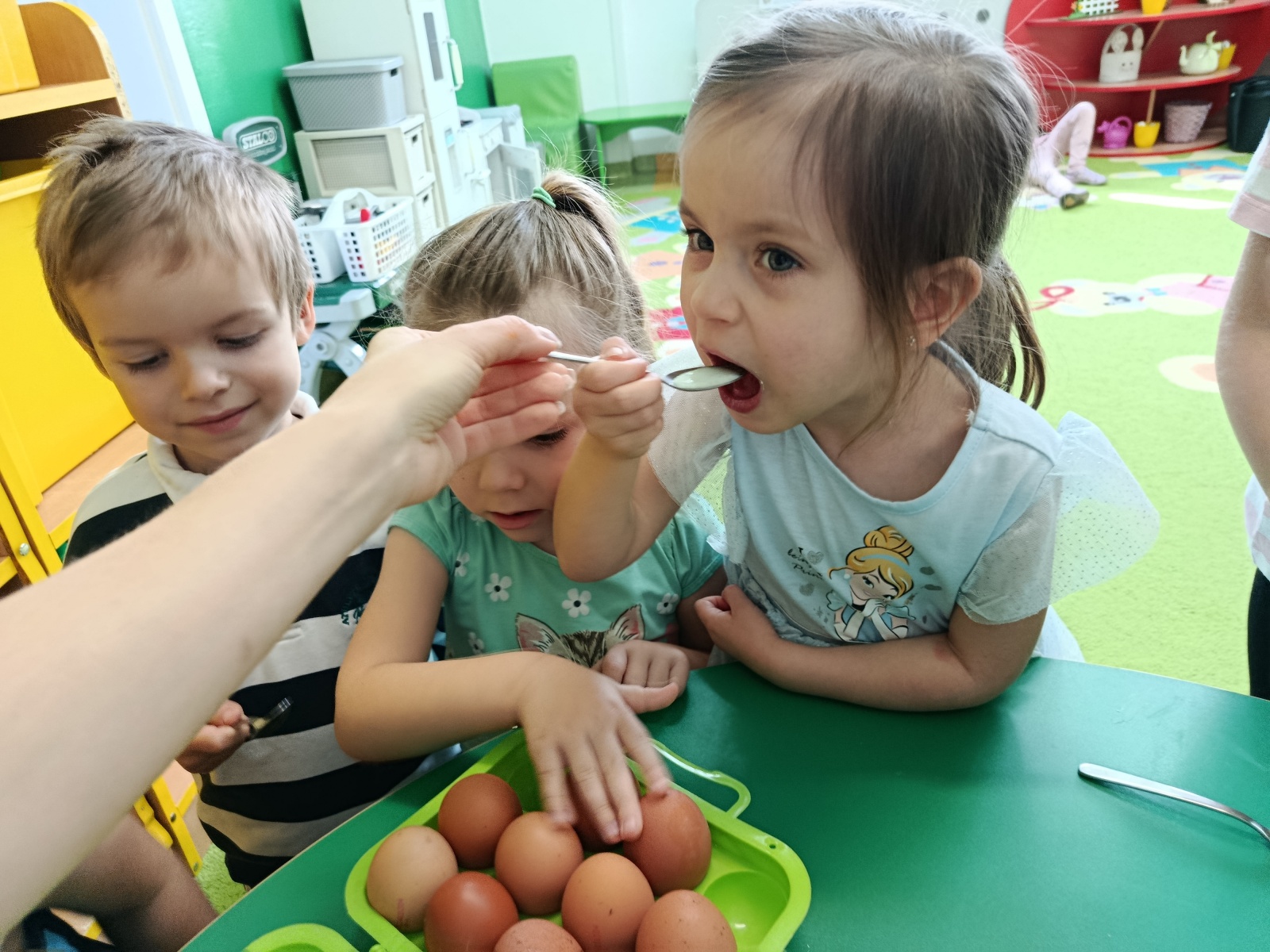 25 marca maluszki dowiedziały się czym jest nabiał. Dzieci uczestniczyły w zabawach ruchowych, poznały drogę mleka od krówki do kartonu, dowiedziały się co zawiera mleko i dlaczego należy jeść produkty mleczne. Podczas degustacji przedszkolaki chętnie próbowały różnego rodzaju serów, kefiru, mleka. Dzieci obiecały iż od teraz będą pić mleczko, jeść sery i jogurty.