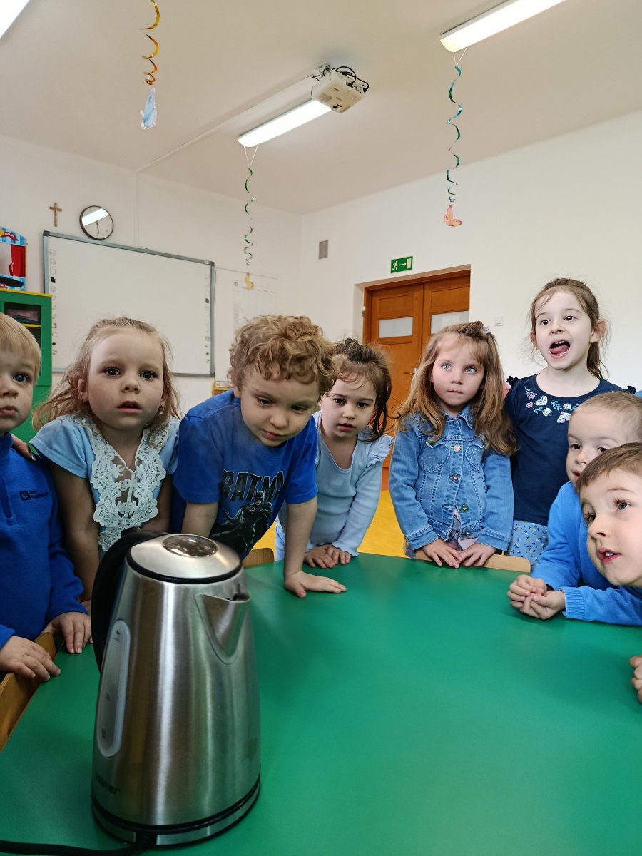 Grupa Motylki wzięła udział w ciekawych zajęciach przyrodniczych z okazji Dnia Wody. Dzieci ubrane na niebiesko, poznały bardzo wiele ciekawych faktów o wodzie – komu i do czego potrzebna jest woda? Jak możemy oszczędzać wodę? Słuchaliśmy różnych odgłosów wody oraz zorganizowaliśmy wyścig z kubkiem – zadaniem dzieci było nie uronić ani kropli wody. Najwięcej radości przyniosły zabawy badawcze – przedszkolaki sprawdzały co pływa a co tonie, co się rozpuszcza a co nie, a także obserwacja różnych stanów skupienia wody. Doświadczenia i eksperymenty rozwijają u dzieci myślenie przyczynowo-skutkowe, ciekawość świata oraz zmysły.