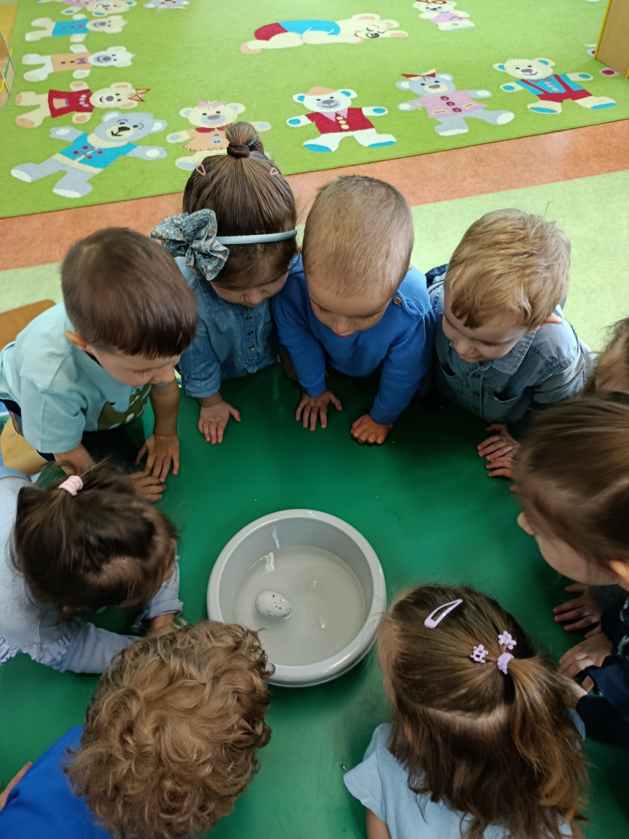 Grupa Motylki wzięła udział w ciekawych zajęciach przyrodniczych z okazji Dnia Wody. Dzieci ubrane na niebiesko, poznały bardzo wiele ciekawych faktów o wodzie – komu i do czego potrzebna jest woda? Jak możemy oszczędzać wodę? Słuchaliśmy różnych odgłosów wody oraz zorganizowaliśmy wyścig z kubkiem – zadaniem dzieci było nie uronić ani kropli wody. Najwięcej radości przyniosły zabawy badawcze – przedszkolaki sprawdzały co pływa a co tonie, co się rozpuszcza a co nie, a także obserwacja różnych stanów skupienia wody. Doświadczenia i eksperymenty rozwijają u dzieci myślenie przyczynowo-skutkowe, ciekawość świata oraz zmysły.
