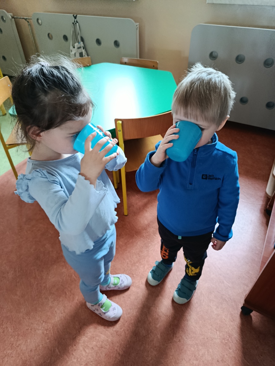 Grupa Motylki wzięła udział w ciekawych zajęciach przyrodniczych z okazji Dnia Wody. Dzieci ubrane na niebiesko, poznały bardzo wiele ciekawych faktów o wodzie – komu i do czego potrzebna jest woda? Jak możemy oszczędzać wodę? Słuchaliśmy różnych odgłosów wody oraz zorganizowaliśmy wyścig z kubkiem – zadaniem dzieci było nie uronić ani kropli wody. Najwięcej radości przyniosły zabawy badawcze – przedszkolaki sprawdzały co pływa a co tonie, co się rozpuszcza a co nie, a także obserwacja różnych stanów skupienia wody. Doświadczenia i eksperymenty rozwijają u dzieci myślenie przyczynowo-skutkowe, ciekawość świata oraz zmysły.
