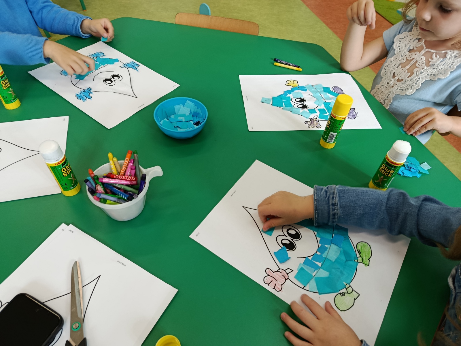 Grupa Motylki wzięła udział w ciekawych zajęciach przyrodniczych z okazji Dnia Wody. Dzieci ubrane na niebiesko, poznały bardzo wiele ciekawych faktów o wodzie – komu i do czego potrzebna jest woda? Jak możemy oszczędzać wodę? Słuchaliśmy różnych odgłosów wody oraz zorganizowaliśmy wyścig z kubkiem – zadaniem dzieci było nie uronić ani kropli wody. Najwięcej radości przyniosły zabawy badawcze – przedszkolaki sprawdzały co pływa a co tonie, co się rozpuszcza a co nie, a także obserwacja różnych stanów skupienia wody. Doświadczenia i eksperymenty rozwijają u dzieci myślenie przyczynowo-skutkowe, ciekawość świata oraz zmysły.