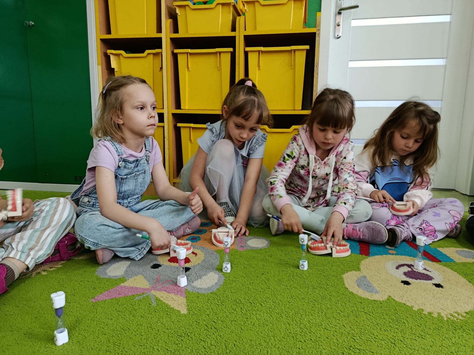 20 kwietnia w naszym przedszkolu odbyły się warsztaty o higienie zębów przeprowadzone przez FunArt Warsztaty Mocno Kreatywne. Były to  ciekawe i pouczające zajęcia, w czasie których dzieci dowiedziały się, co szkodzi zębom, a jakie produkty pomagają zachować je zdrowe i mocne. Dzieci uczyły się także prawidłowego szczotkowania zębów na specjalnych modelach. Na zakończenie każde dziecko otrzymało klepsydrę do odmierzania czasu mycia zębów, aby codzienna higiena była jeszcze łatwiejsza i skuteczniejsza.